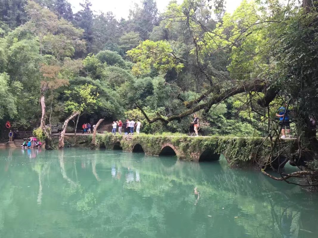 次日早晨,大家乘大巴車行至地球上同一緯度唯一的綠寶石喀斯特林帶、世界自然遺產地——貴州南部的荔波樟江風景名勝區(qū),行走在景區(qū)內,一步一景,處處都值得用照片來定格和記憶:輕柔恬靜的涵碧潭,古風依稀的七孔石橋,飛流狂瀉的拉雅瀑布,潭瀑交錯的68級跌水瀑布,空成華章的響水河,盤根錯節(jié)的龜背山,林溪穿插的水上原始森林,銀漣飛濺的臥龍?zhí)?、還有密林鑲嵌的鴛鴦湖......大自然的造化,在這里顯露無遺。印象最深的莫過于戲水鴛鴦湖,三五成群,結伴劃船,一抹抹亮橙色的救生衣,在陽光照耀下,格外明媚,碧波平如鏡,亦如劃船人此刻的內心。