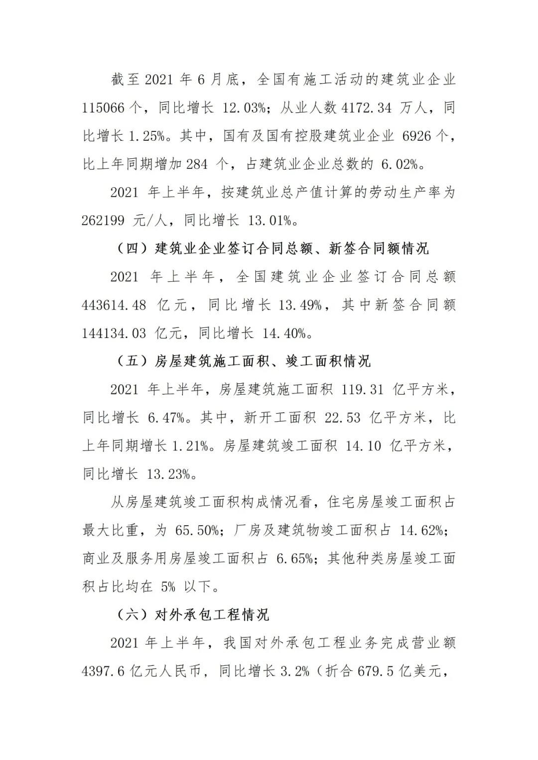 2021年上半年建筑業(yè)發(fā)展統(tǒng)計分析