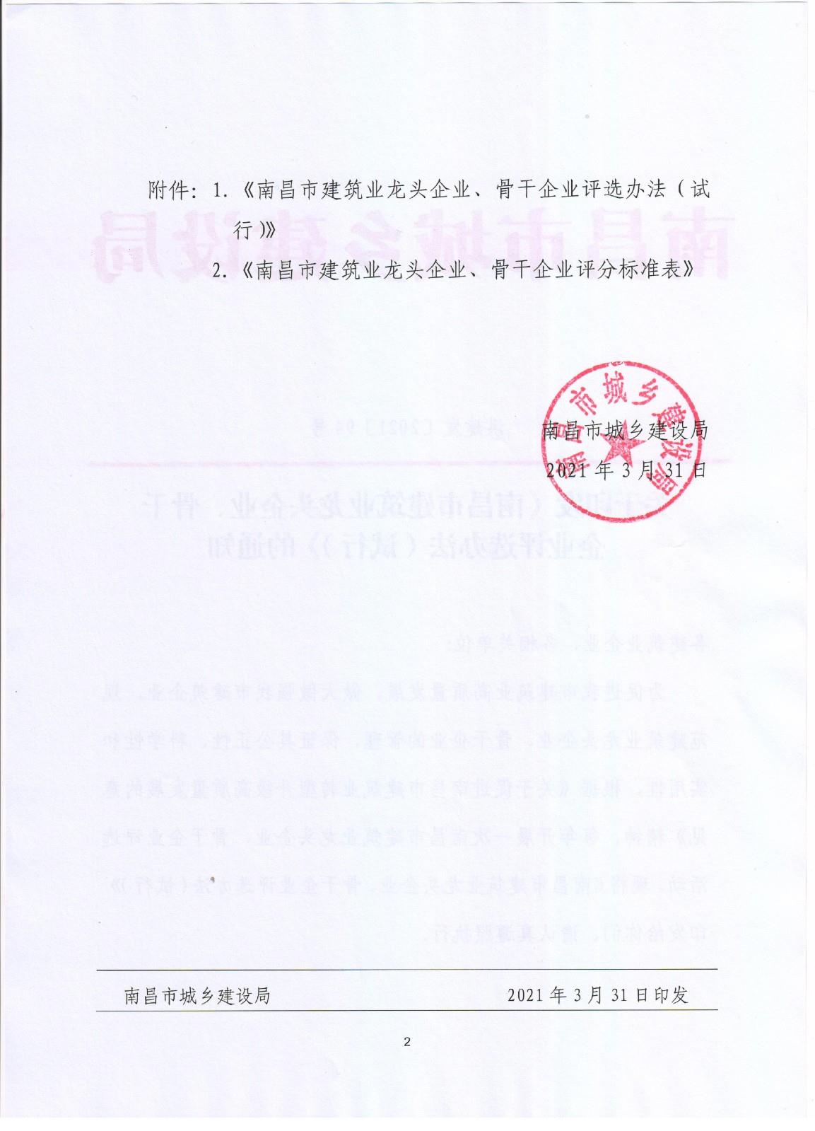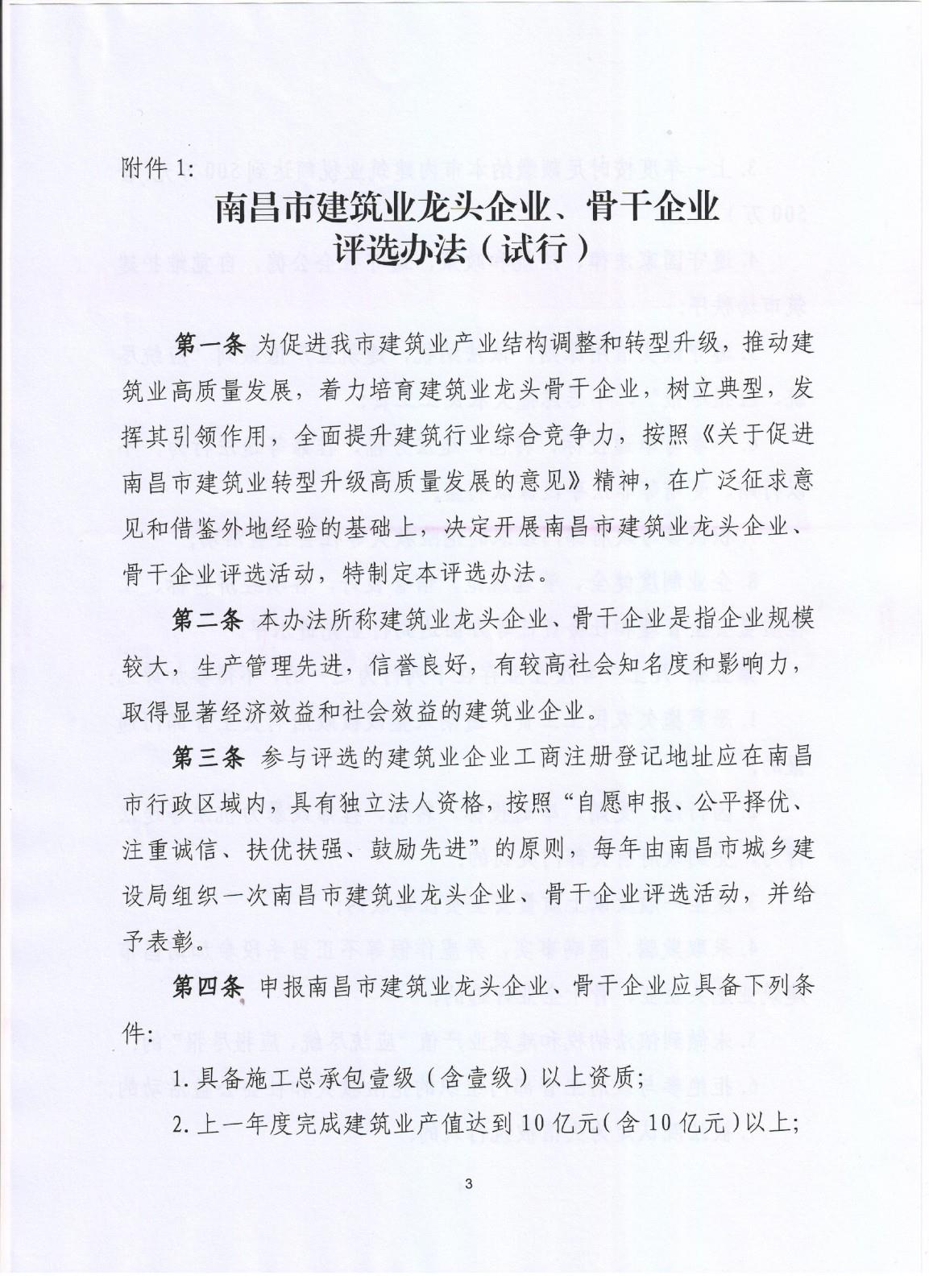 關(guān)于印發(fā)《南昌市建筑業(yè)龍頭企業(yè)、骨干企業(yè)評(píng)選辦法(試行)》的通知